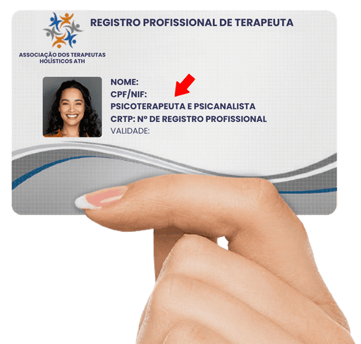 Todos os alunos que se inscreverem para essa nova turma, além do certificado, também terão direito a Carteira com Registro Profissional de Psicoterapeuta e Psicanalista emitida pela Associação dos Terapeutas ATH.